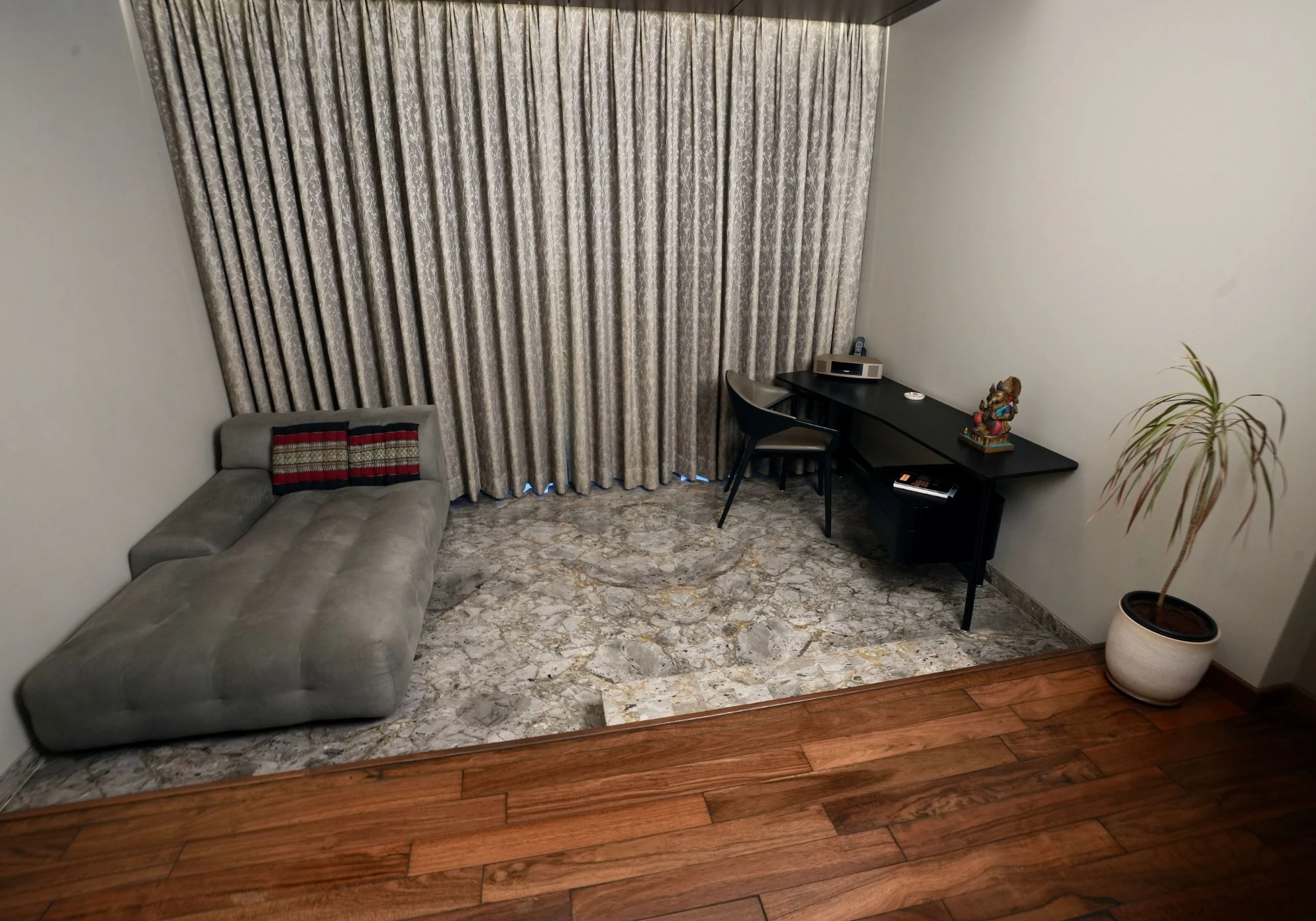 Created for a young family with two daughters, every detail here whispers comfort and togetherness. The heart of the home is the enlarged kitchen with its oversized island, now the daily hub for homework, chai, and laughter. Soft palettes, open layouts, and nurturing touches make this apartment feel like a perpetual hug, functional, beautiful, and effortlessly lived-in.