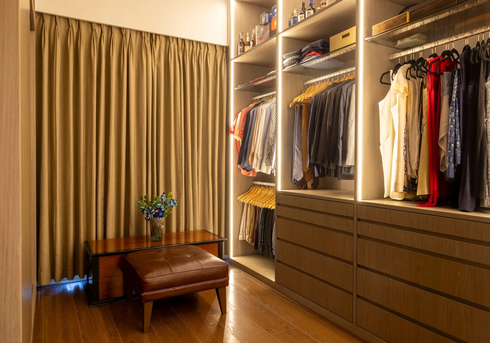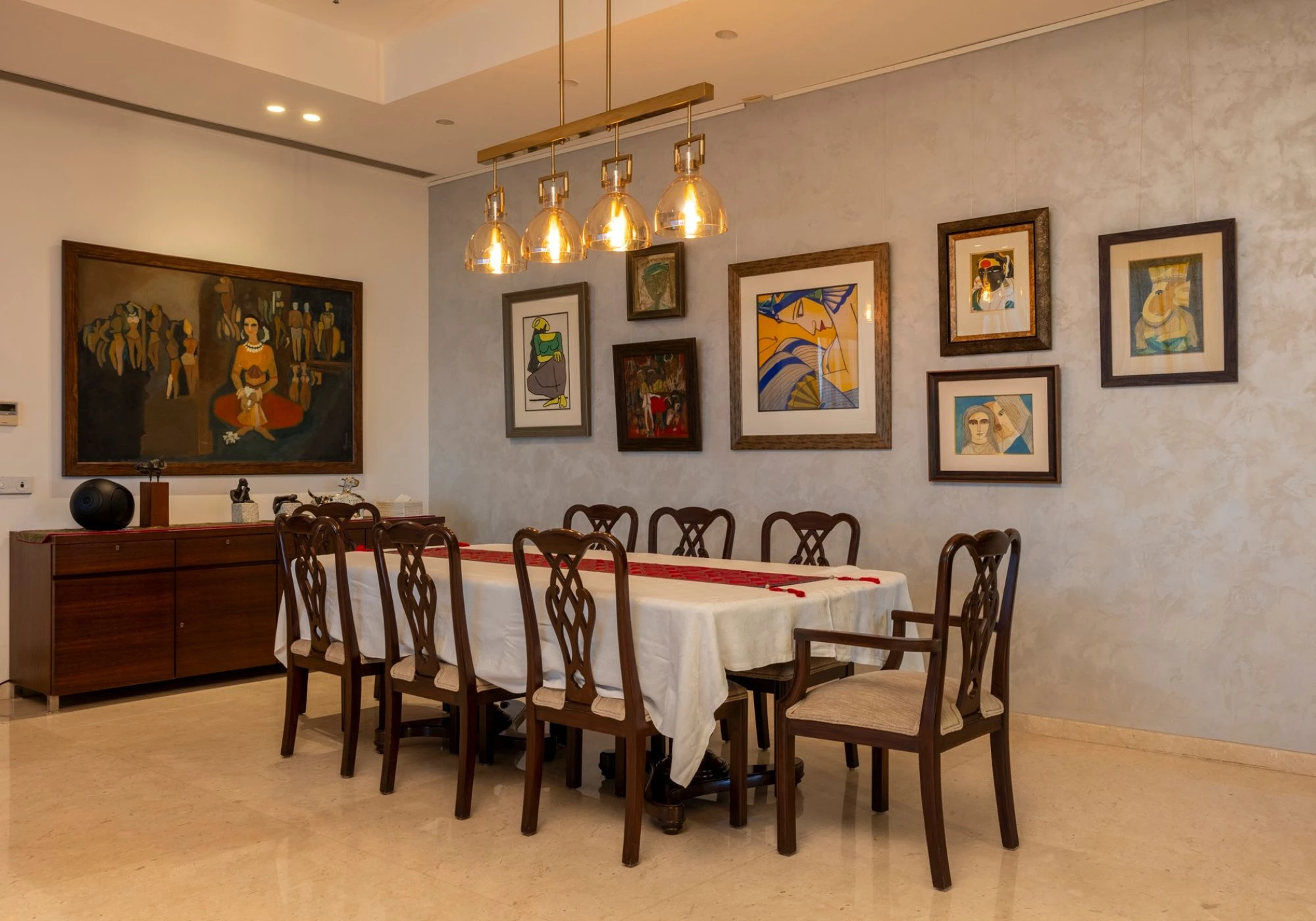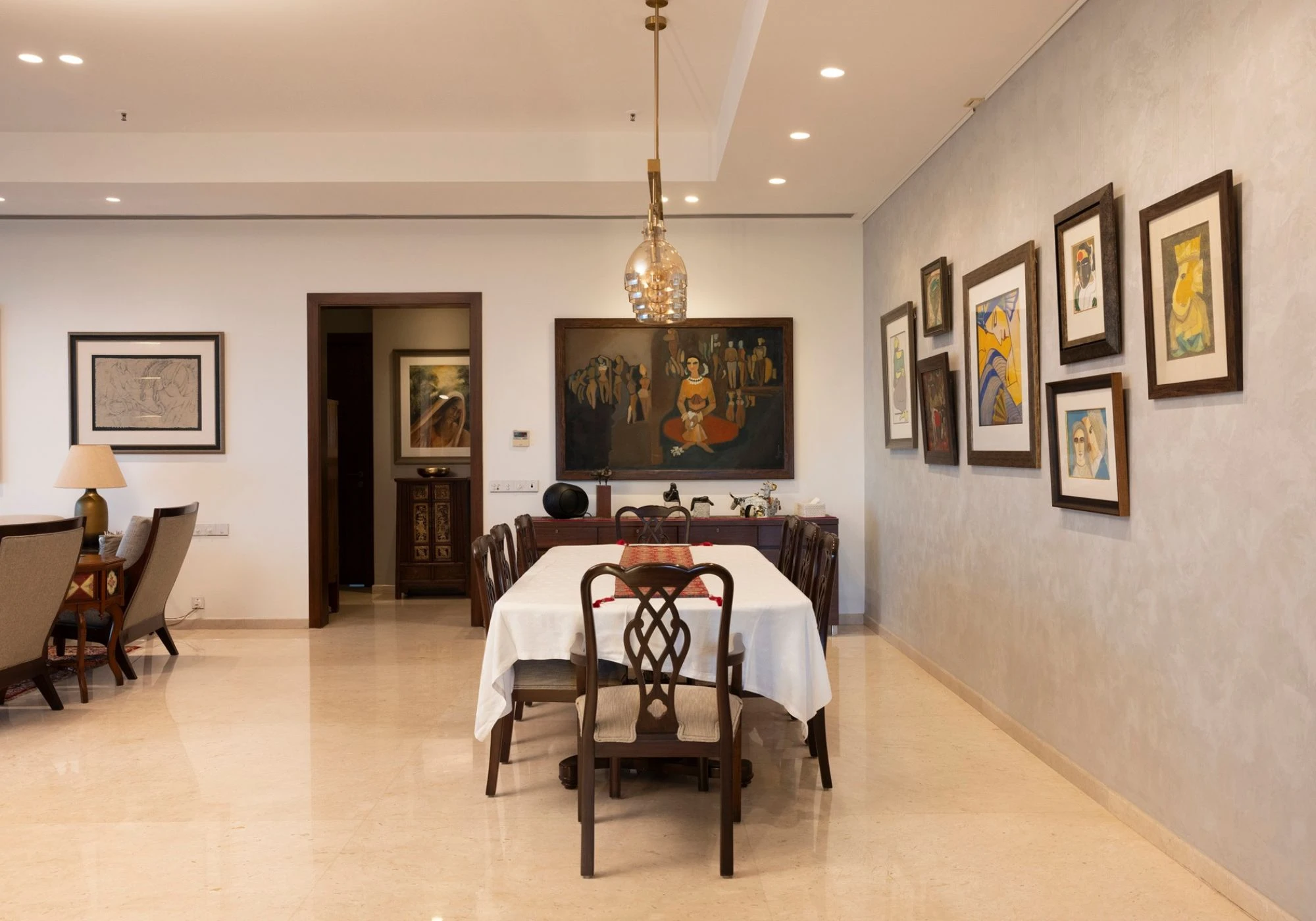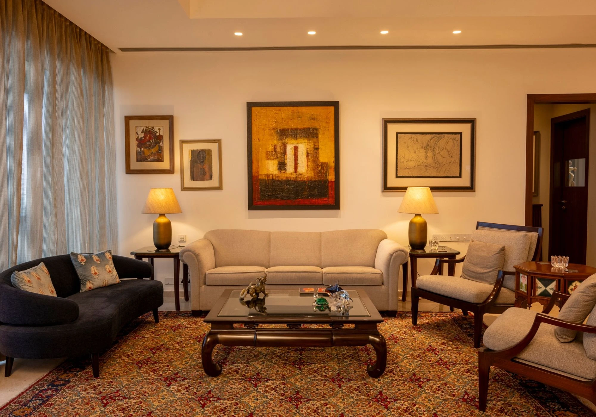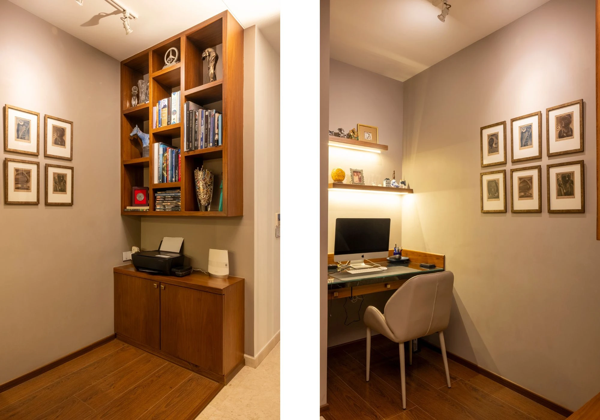 Created for a young family with two daughters, every detail here whispers comfort and togetherness. The heart of the home is the enlarged kitchen with its oversized island, now the daily hub for homework, chai, and laughter. Soft palettes, open layouts, and nurturing touches make this apartment feel like a perpetual hug, functional, beautiful, and effortlessly lived-in.